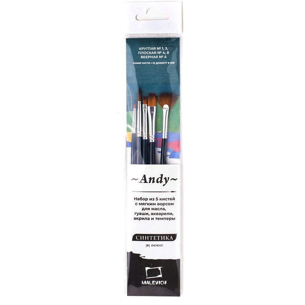 Набор кистей из синтетики Малевичъ «Энди» (5 кистей) 753905