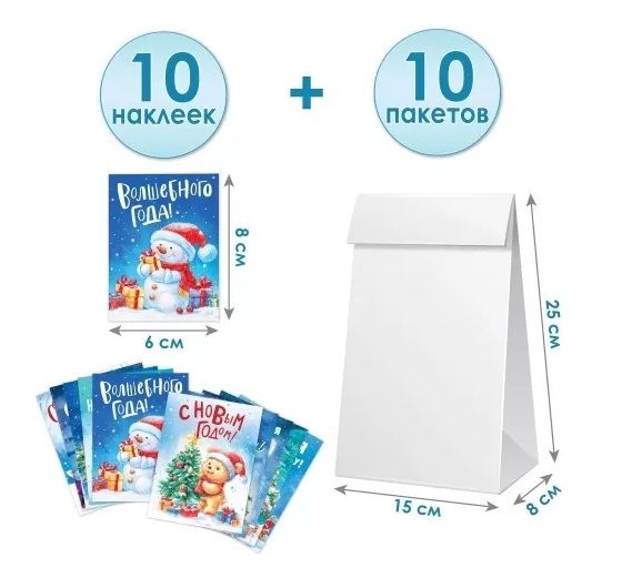 Набор оформительский «Новогодний» (10 наклеек+10 пакетов) 11.999