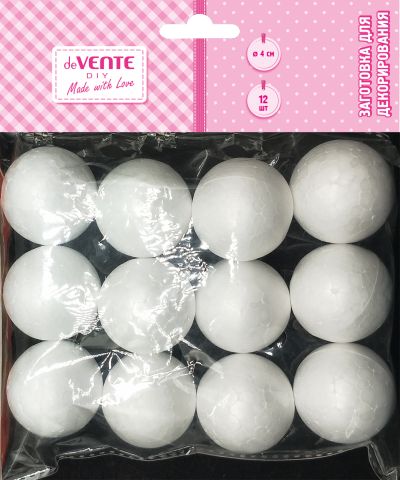 Заготовка для декорирования 'deVENTE. Шары' из пенополистирола, d=40 мм, 12 шт, в пластиковом пакете с подвесом
