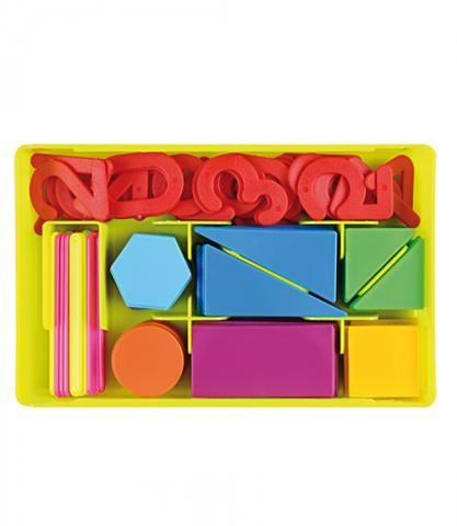 Обучающее и развивающее наглядное пособие, способствует развитию мелкой моторики. С его помощью ребенок изучит базовые геометрические фигуры, цифры, научится решать простые арифметические примеры. В состав кассы входят: прямоугольник, квадрат, прямоугольный треугольник, равнобедренный треугольник, круг, пятиугольник, цифры от 0 до 9 – 2 комплекта, математические знаки + – = < >, счетные палочки. Все элементы набора имеют закругленные углы.