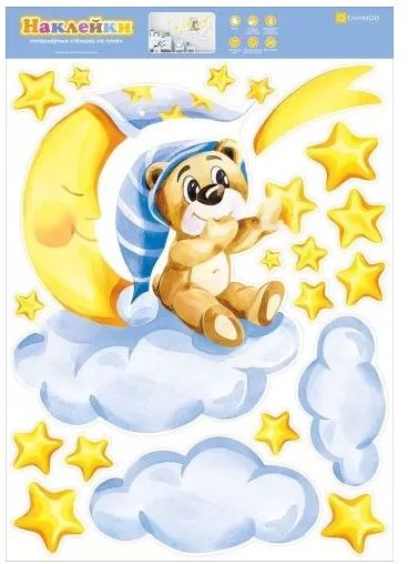 Наклейка оформительская «Мишка (мальчик) на месяце» 16.11.00593