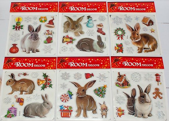Наклейка Зайцы силиконовая 18*18см 6видов SDTB-01-06