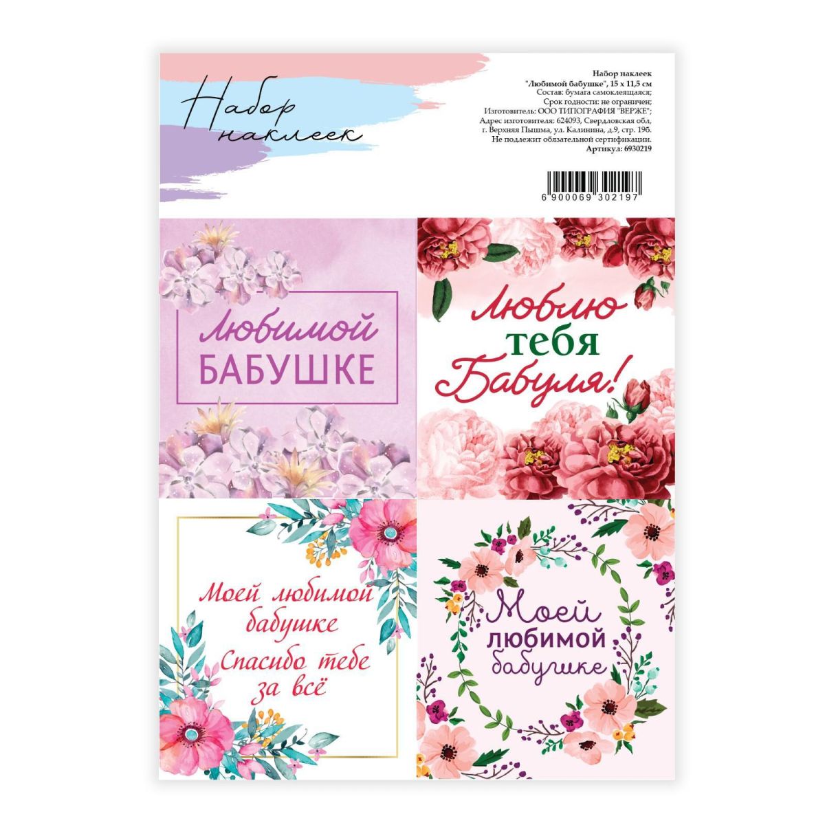 Наклейки для цветов и подарков «Любимой бабушке» 15*11,5см 6930219