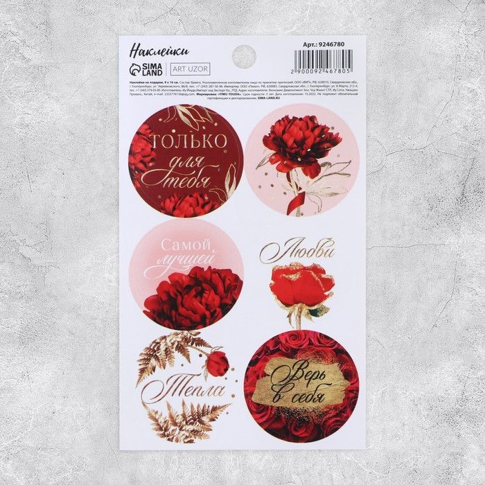 Наклейки «Любовь», цветы, 9 × 16 см 9246780