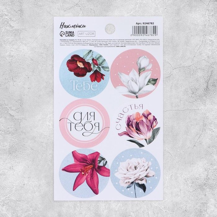 Наклейки на подарки «Счастья» цветы 9*16см 9246782