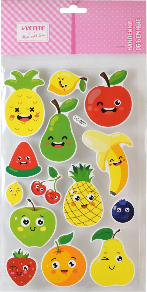 Наклейки объемные 'deVENTE. Fruits' из фоамирана, карточка 15x25 см, в пластиковом пакете с блистерным подвесом 8004080