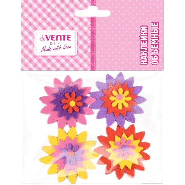 Наклейки объемные 'deVENTE. Большие цветы' из фоамирана, размер 97x98 мм, 4 шт, в пластиковом пакете с блистерным подвесом