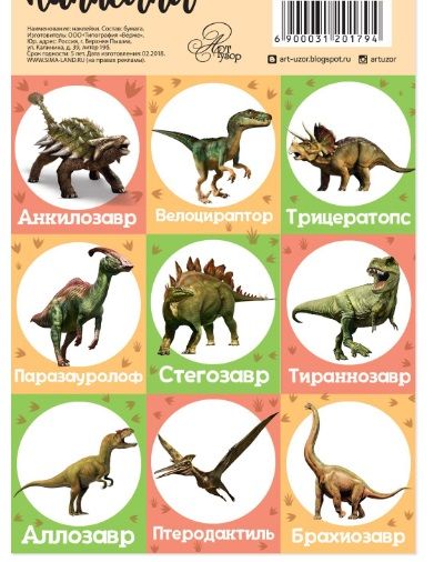 Наклейки с раскраской на обороте «Динозавры» 11х 16см 6900031201794