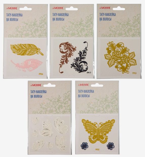 Набор самоклеящихся наклеек для волос 'deVENTE. Inspiration. 1' 9x9,5 см, в пластиковом пакете с блистерным подвесом, ассорти 5 дизайнов