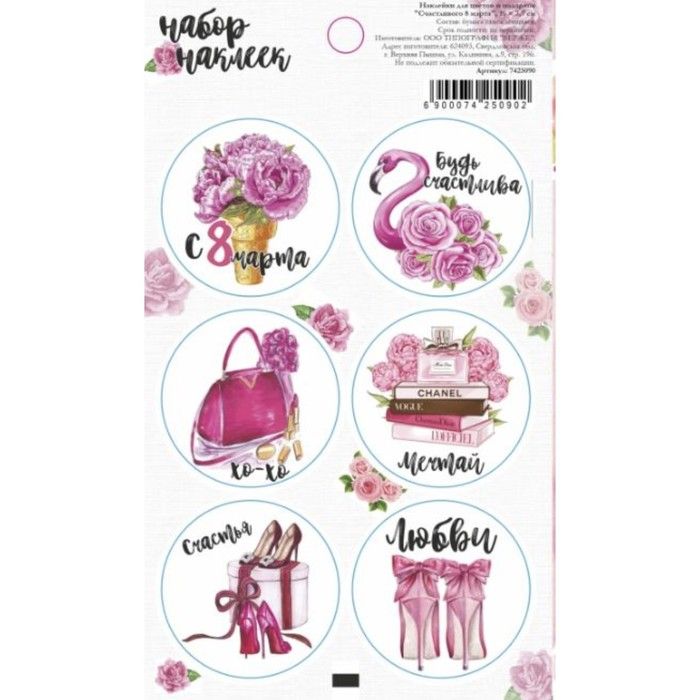Наклейки «Счастливого 8 марта», 16 х 7,7 см 7425090