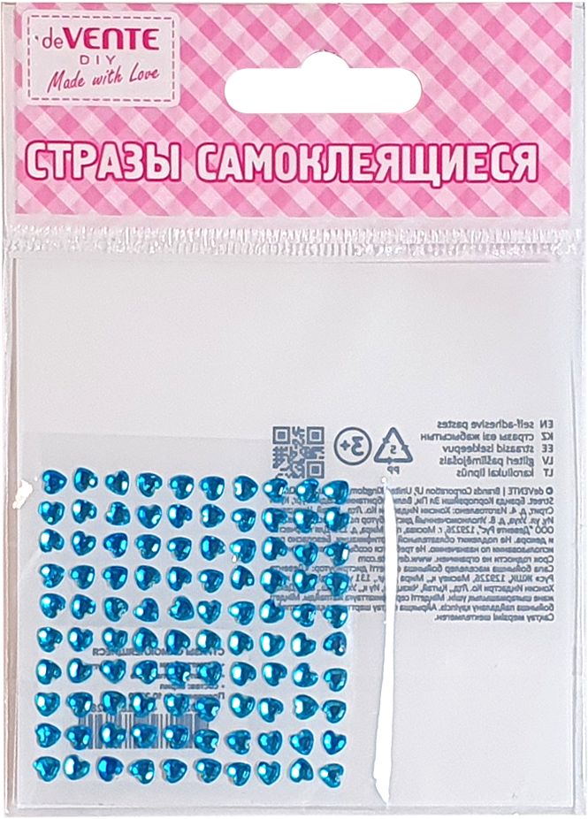 Стразы самоклеящиеся 'deVENTE. Heart' акриловые, размер 4 мм, карточка 60x60 мм, голубые, 100 шт в пластиковом пакете с блистерным подвесом