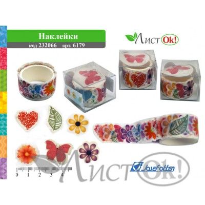 Наклейки «Цветы, бабочки» в рулоне,25*25мм,бумага,асс 6179