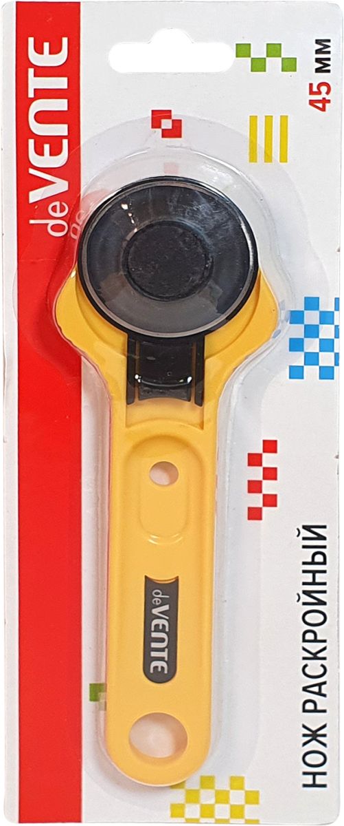Нож раскройный дисковый 'deVENTE' d=45 мм, металлический, с защитой лезвия, для точного раскроя, картонный блистер