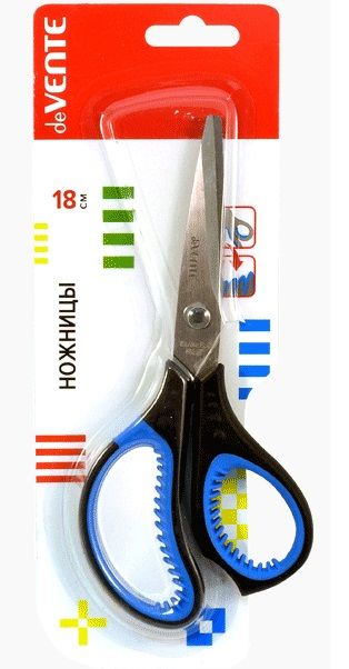 Ножницы канцелярские 'deVENTE. Gills' 18 см, двухцветные прорезиненные кольца c лепестками, в картонном блистере.