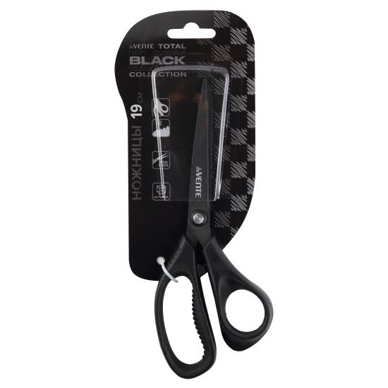 Ножницы канцелярские "deVENTE. TOTAL BLACK" 19 см, черные прорезиненные кольца с лепестками, 3D лезвия, тефлоновое покрытие лезвий, в картонном блистере