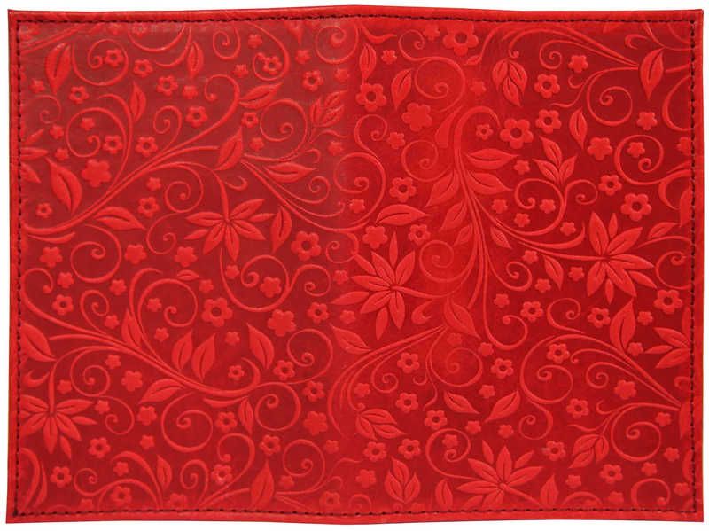 Обложка для автодокументов из натуральной кожи, красный, сплошное тиснение по коже 'Флаверс'