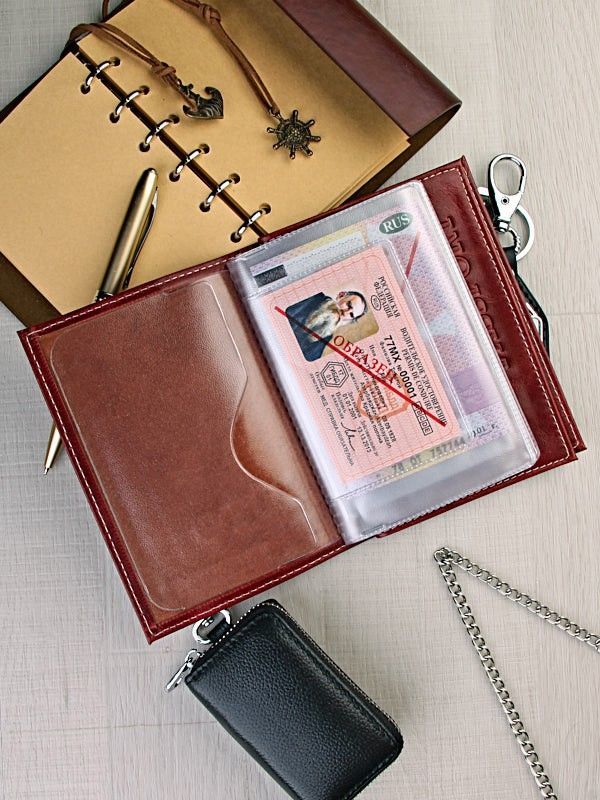 Обложка для автодокументов и паспорта выполнена из натуральной кожи с тиснением блинт. Изделие раскладывается пополам. Внутри два потайных кармана, отделение для паспорта. В комплекте съемный ПВХ вкладыш для автодокументов блок из шести прозрачных файлов из пластика, один из которых формата А5, два боковых кармана. Обложка для автодокументов поможет сохранить их внешний вид и защитить от повреждений.