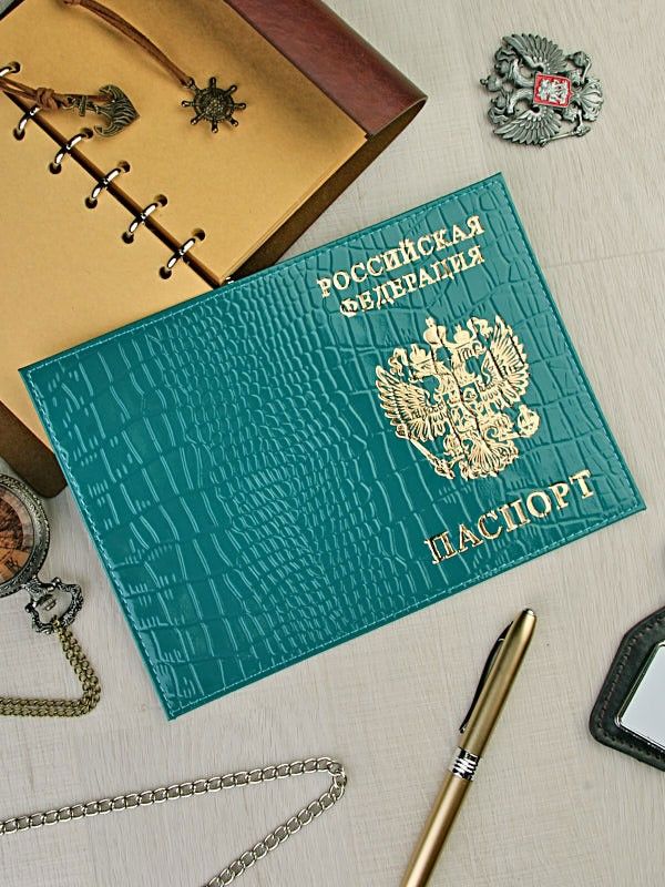 Обложка на паспорт Крокодил нат. кожа. А-052 Бирюзовая