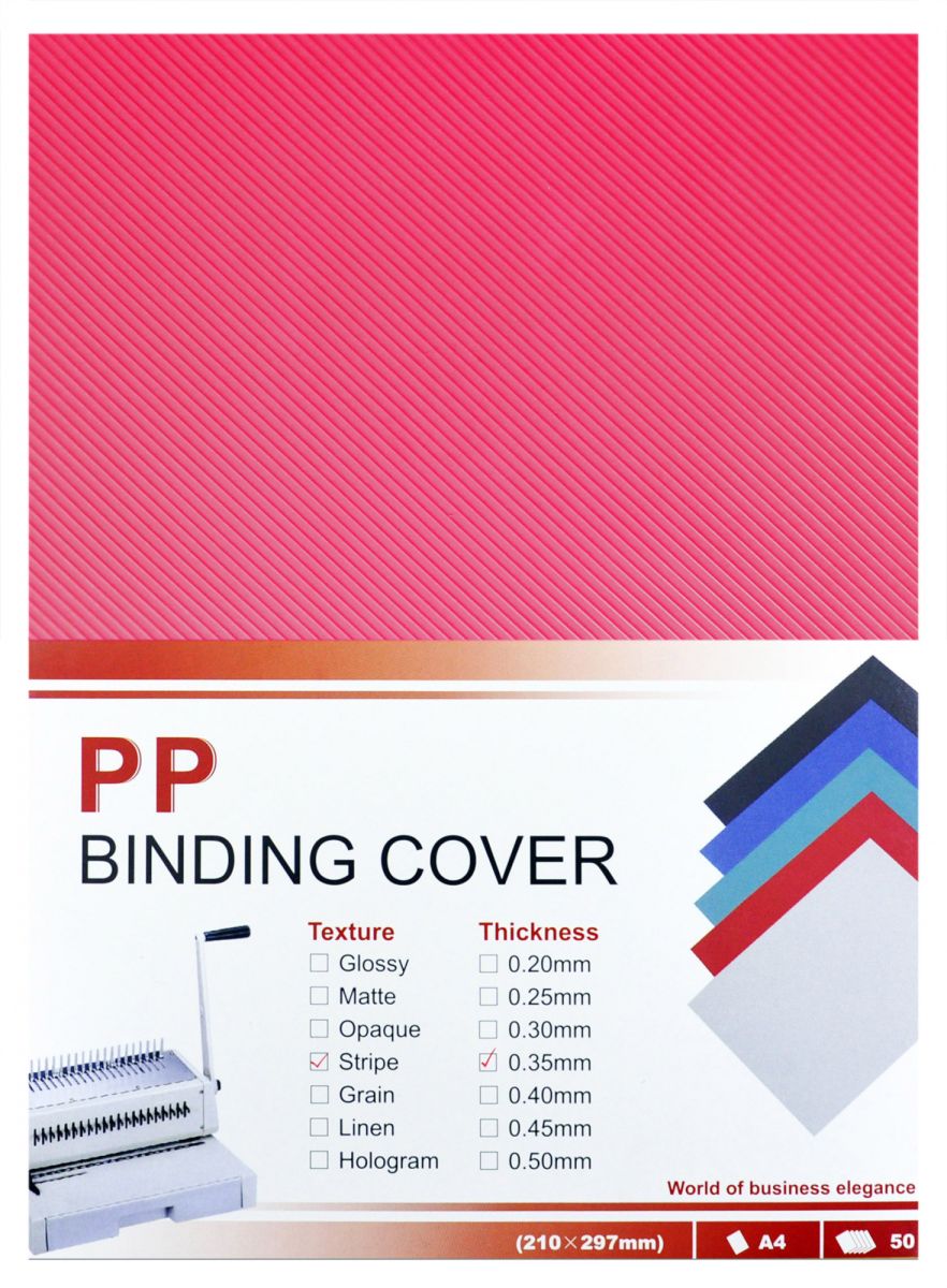 Обложка для переплета пластиковая прозрачная используется при брошюровке документов чаще всего как верхняя обложка. Пластиковая обложка для переплета хорошо защищает страницы от пыли и грязи, придает документу более строгий и презентабельный вид. Эта обложка прозрачная, красная, поэтому через нее виден текст, напечатанный на листе бумаги, на котором лежит обложка. Поверхность обложки украшают диагональные линии (рифление). Толщина обложки 0,35мм. Формат А4. В одной упаковке 50 штук обложек. Материал обложки ПП (полипропилен) - это дорогой материал, поэтому обложка придает документу солидность. Подходит ко всем типам брошюраторов и переплетных машин.