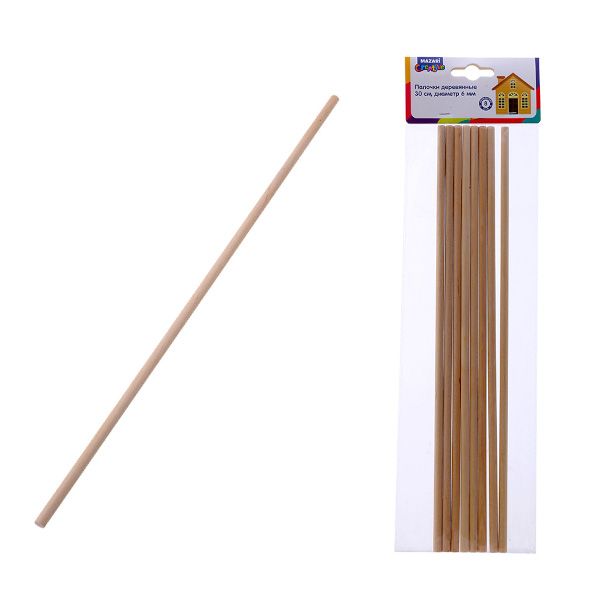 Палочки деревянные круглые, 30см, d=6мм (8шт) M-10000
