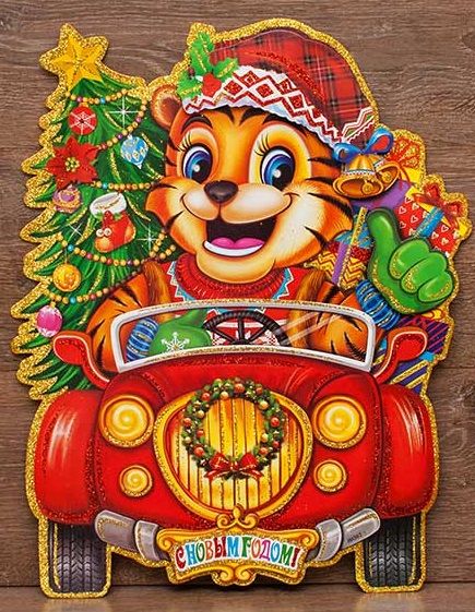 Панно 2022 «Тигр на машине» 35*50см HH382-1