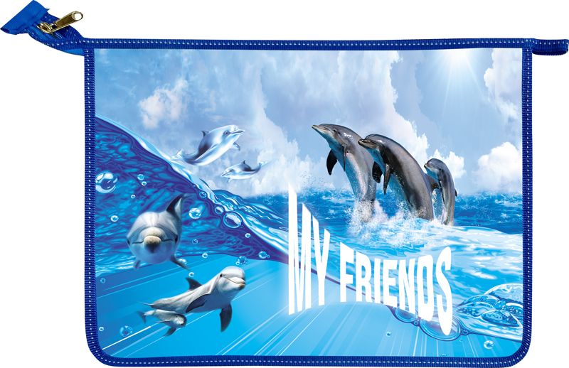Папка д/тетрадей А4 на молнии 8Ш4 8041012 Дельфины