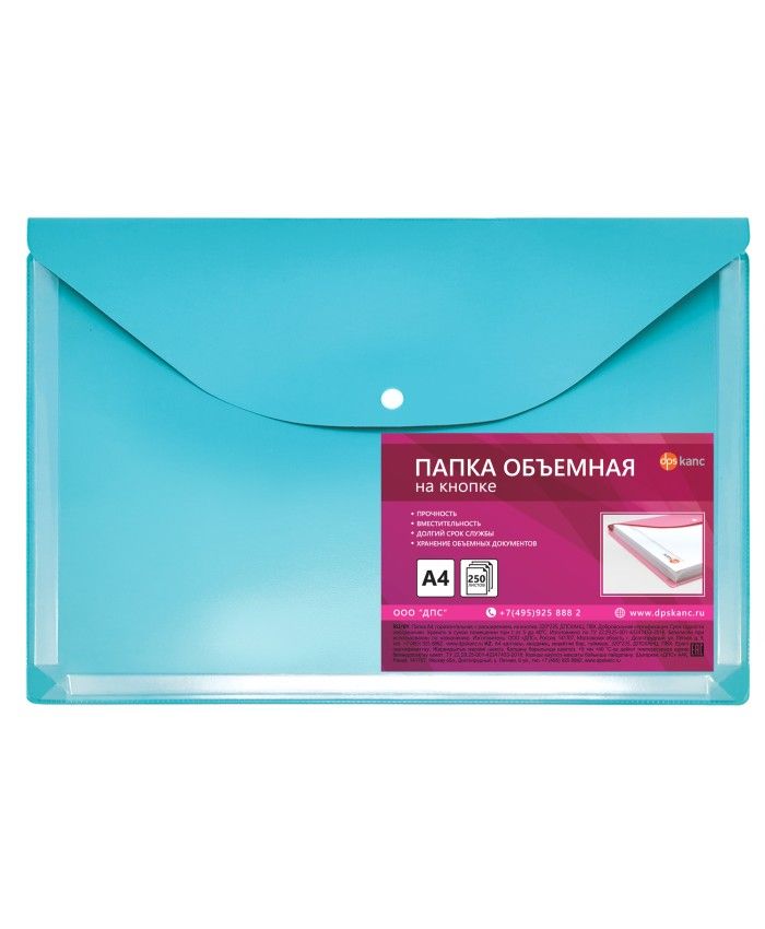 Папка объемная на кнопке А4 230*310 бирюзовая 2980-118