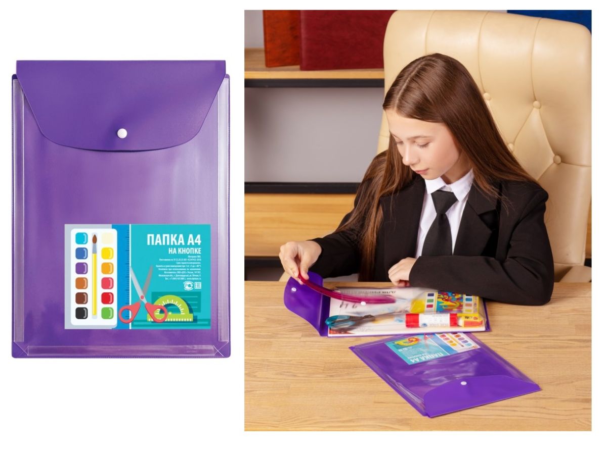 Папка объемная на кнопке А4 230*310 фиолетовая 2920-110