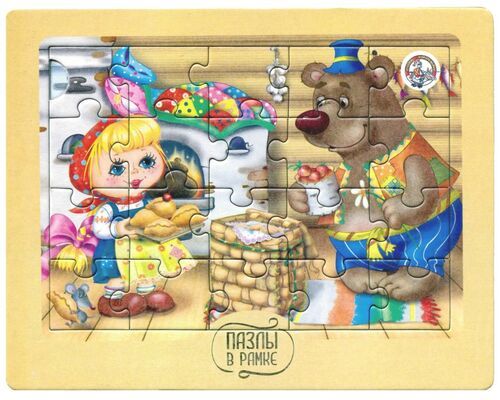 Картонные пазлы для детей на подложке с рамкой «Маша и медведь»: