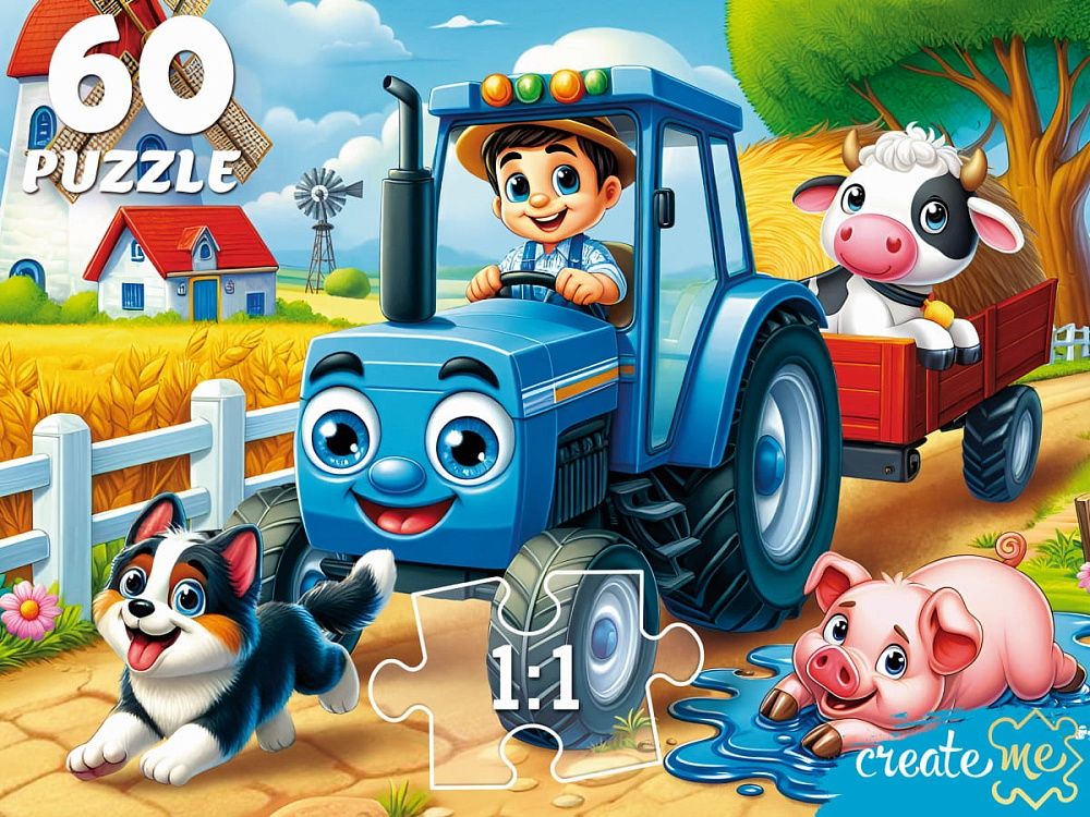 Пазлы 60эл. Ф60-4527 ВЕСЕЛЫЙ ТРАКТОР И КОМПАНИЯ