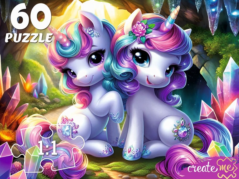 Пазлы 60эл. Ф60-4528 ЕДИНОРОГИ СРЕДИ КРИСТАЛЛОВ
