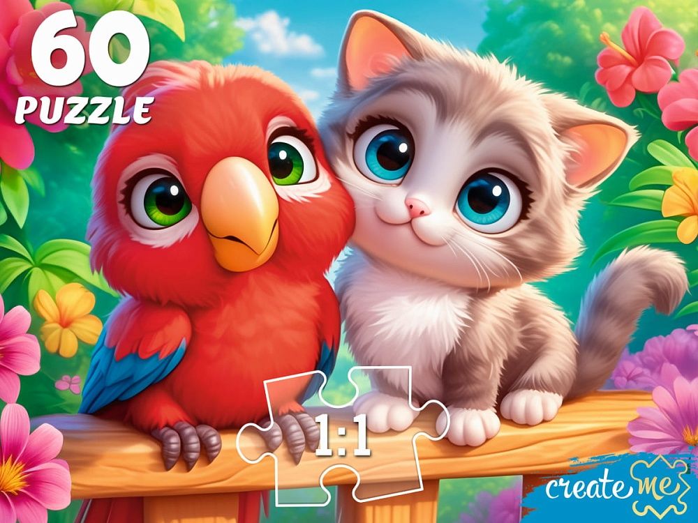 Пазлы 60эл. П60-5994 КОТЁНОК И ПОПУГАЙ
