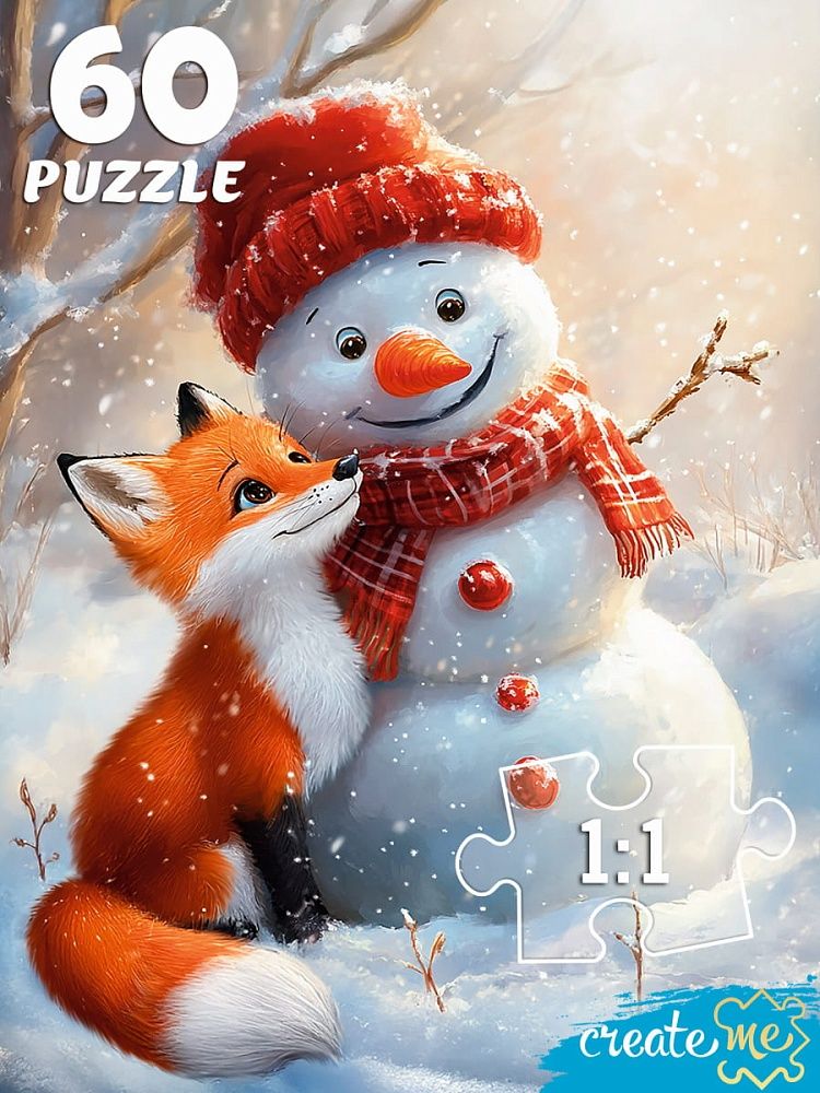 Пазлы 60эл. П60-7599 ЛИСЕНОК И СНЕГОВИЧОК