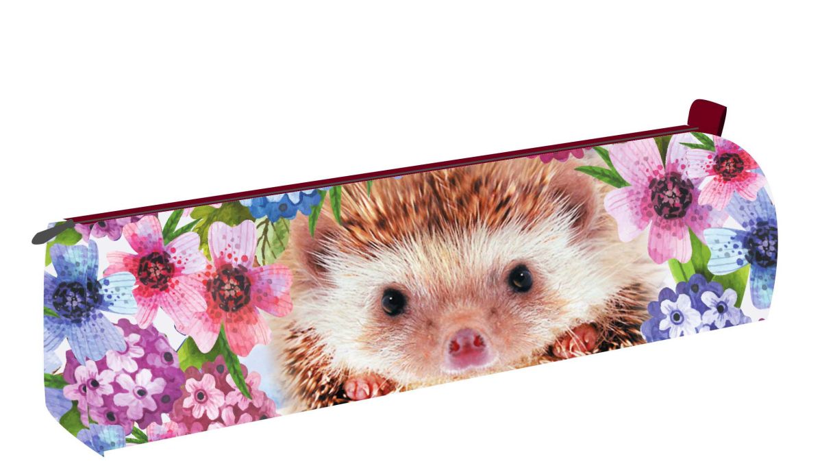 89180 Пенал объёмный 'Ёжик в цветах', одно отделение, на молнии, размер 21*9*4 см., 600 ден