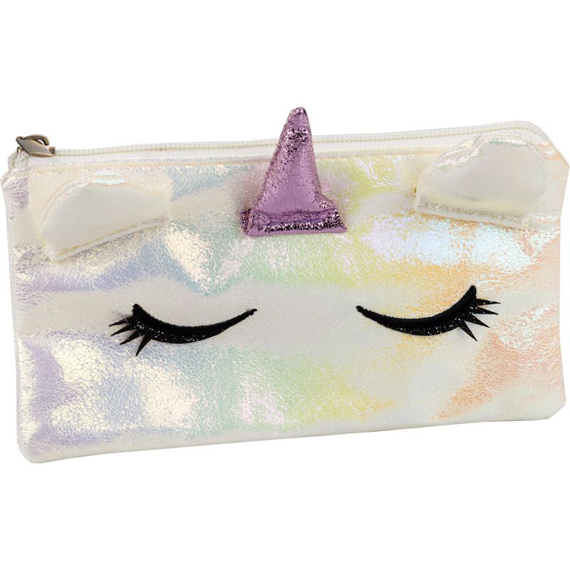 Пенал - косметичка "Единорог" выполнен из высококачественного голографического кожзама, дополнен аппликацией. Пенал воплощает последние модные тенденции и универсальность использования, может использоваться не только по назначению, но и в качестве небольшой косметички. Благодаря плотному материалу и качественному пошиву, пенал не теряет первоначальный вид даже при длительном использовании. Размер: 21*10 см.