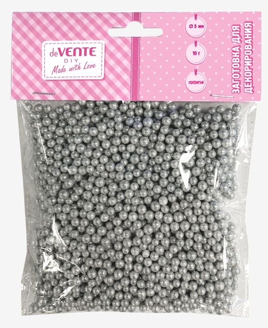 Заготовка для декорирования 'deVENTE. Шар' из пенополистирола, d=5 мм, общий вес 10 г, цвет серебряный, в пластиковом пакете с подвесом