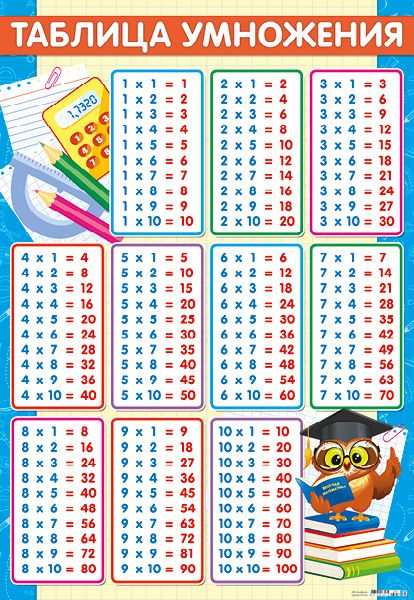 Плакат школьный Таблица умножения 23957 Ученая сова