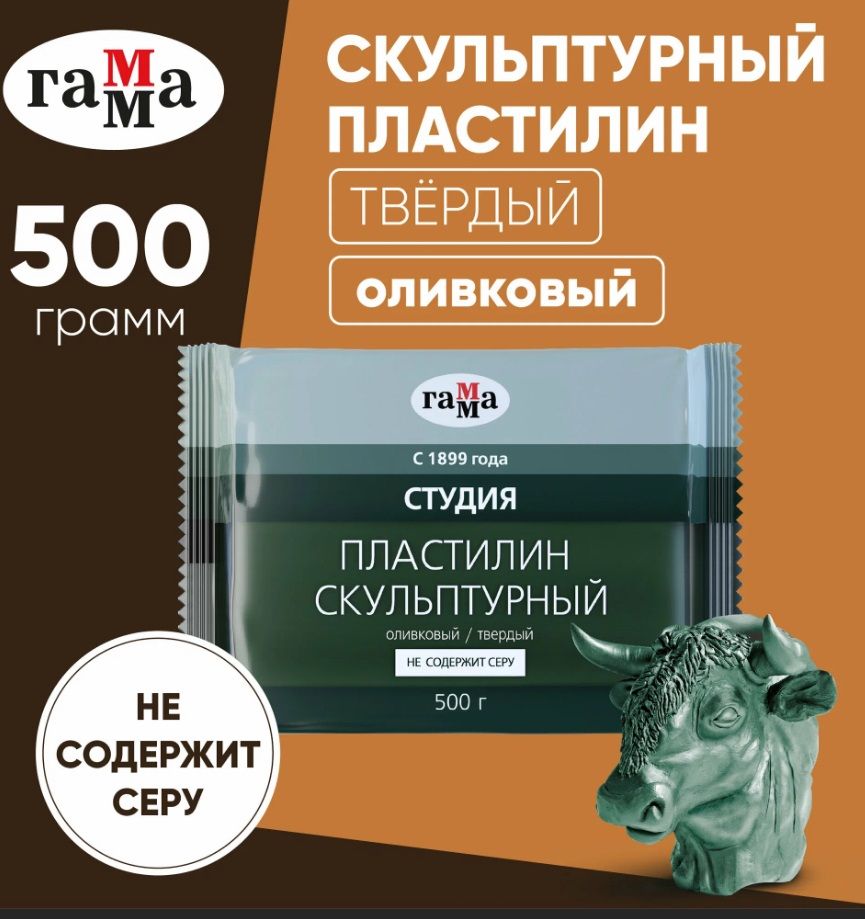 Скульптурный твёрдый пластилин ГАММА серии «Студия» оливкового цвета. Прекрасно держит форму и устойчив к перепадам температуры, не оставляет пятен и не липнет к рукам. Не токсичен: не содержит серу, без выраженного химического запаха. Скульптурный пластилин ГАММА помещён в вакуумную упаковку. Вес бруска — 500 г.