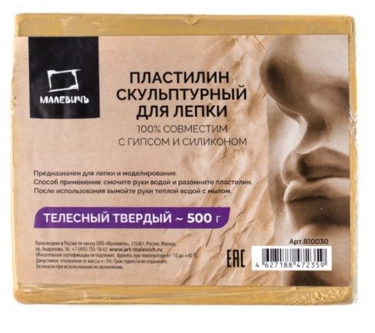 Скульптурный пластилин Малевичъ предназначен как для профессионального моделирования скульптур и макетов, так и для лепки в свое удовольствие и занятий с детьми. 100% совместимость с гипсом и силиконом. Устойчив к перепаду температур, держит заданную форму. Для более эффективной работы рекомендуется смочить руки перед работой с пластилином и тщательно его размять. После использования мойте руки тёплой водой с мылом. Доступны - 5 цветов пластилина, в двух вариантах (твёрдый и мягкий) для каждого цвета: белый, серый, кремовый, оливковый и терракота. Без запаха, не содержит серы. Вес бруска - 500 г. Срок годности не ограничен.