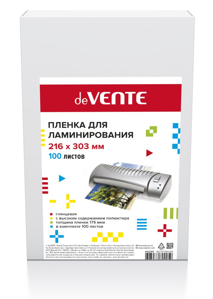 Пленка для ламинирования "deVENTE" A4 216x303 мм, толщина 175 мкм, 100 л