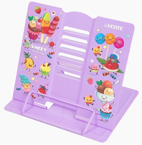 Подставка для учебников и книг 'deVENTE. Sweets' 21x19 см, металлическая окрашенная, вес 500 г, с противоскользящими ножками, с полноцветным рисунком, в пластиковом пакете с европодвесом
