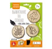 Выжигание на спилах «Сова, Зайка, Ежик» (спил малый) 04803