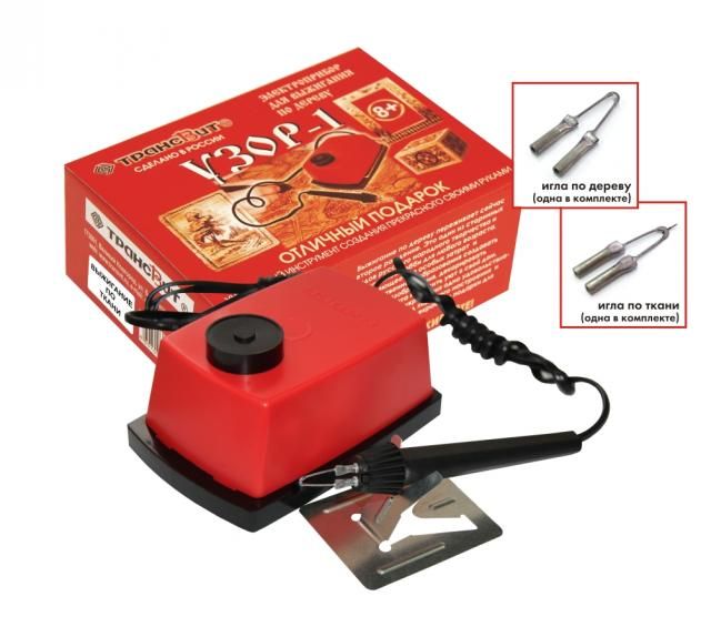 Комплект прибора дополнен иглой для выжигания по ткани специальной конструкции, что расширяет возможность использования прибора для увлекательного занятия и творчества.