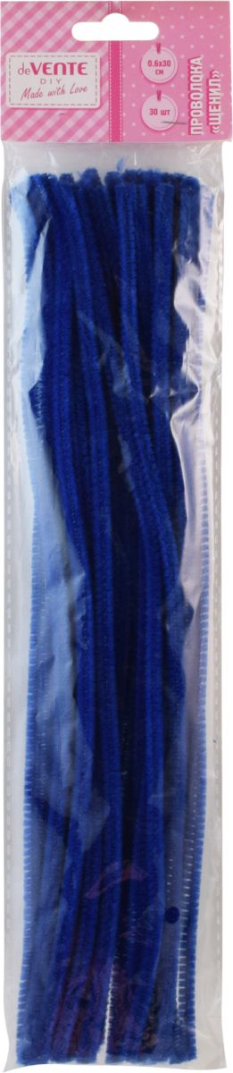 Проволока пушистая Шенил для творчества 'deVENTE' 0,6x30 см, 30 шт, цвет синий, в пластиковом пакете с блистерным подвесом