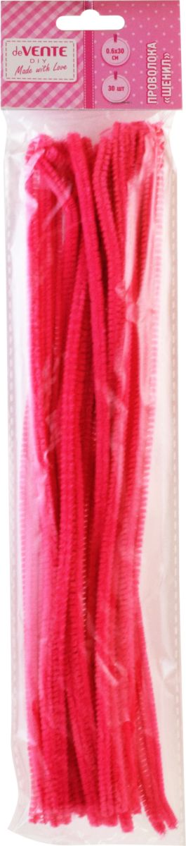 Проволока пушистая Шенил для творчества 'deVENTE' 0,6x30 см, 30 шт, цвет розовый, в пластиковом пакете с блистерным подвесом