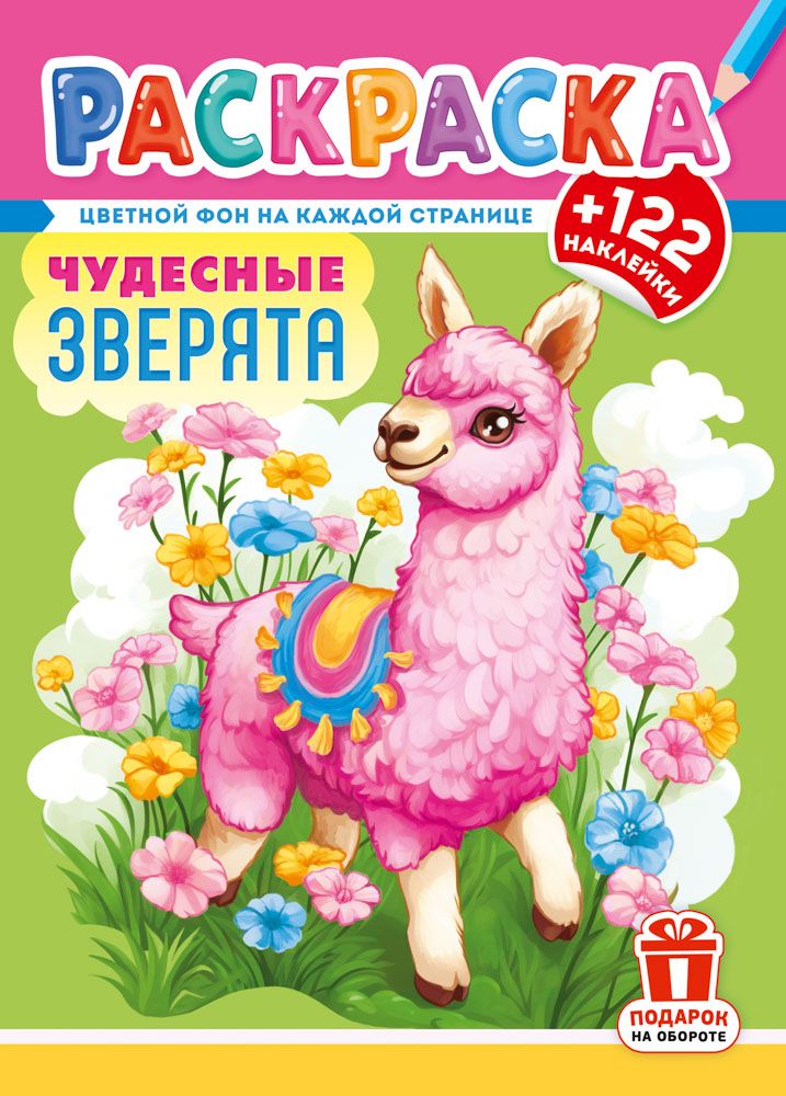Раскраска А4 с наклейками РН-1268 «Чудесные зверята»