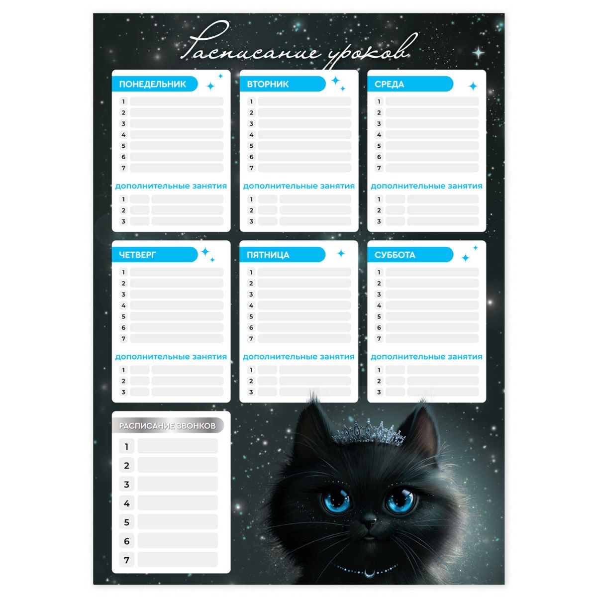 Расписание уроков А3, арт. 68846/ 50 ПРИНЦЕССА ЛУНА (297х420 мм, материал: мелованный картон 235 г/м², полноцветная печать, декор: выборочный УФ-лак; цвет: голубой, синий, чёрный; индивидуальная упаковка: нет)
