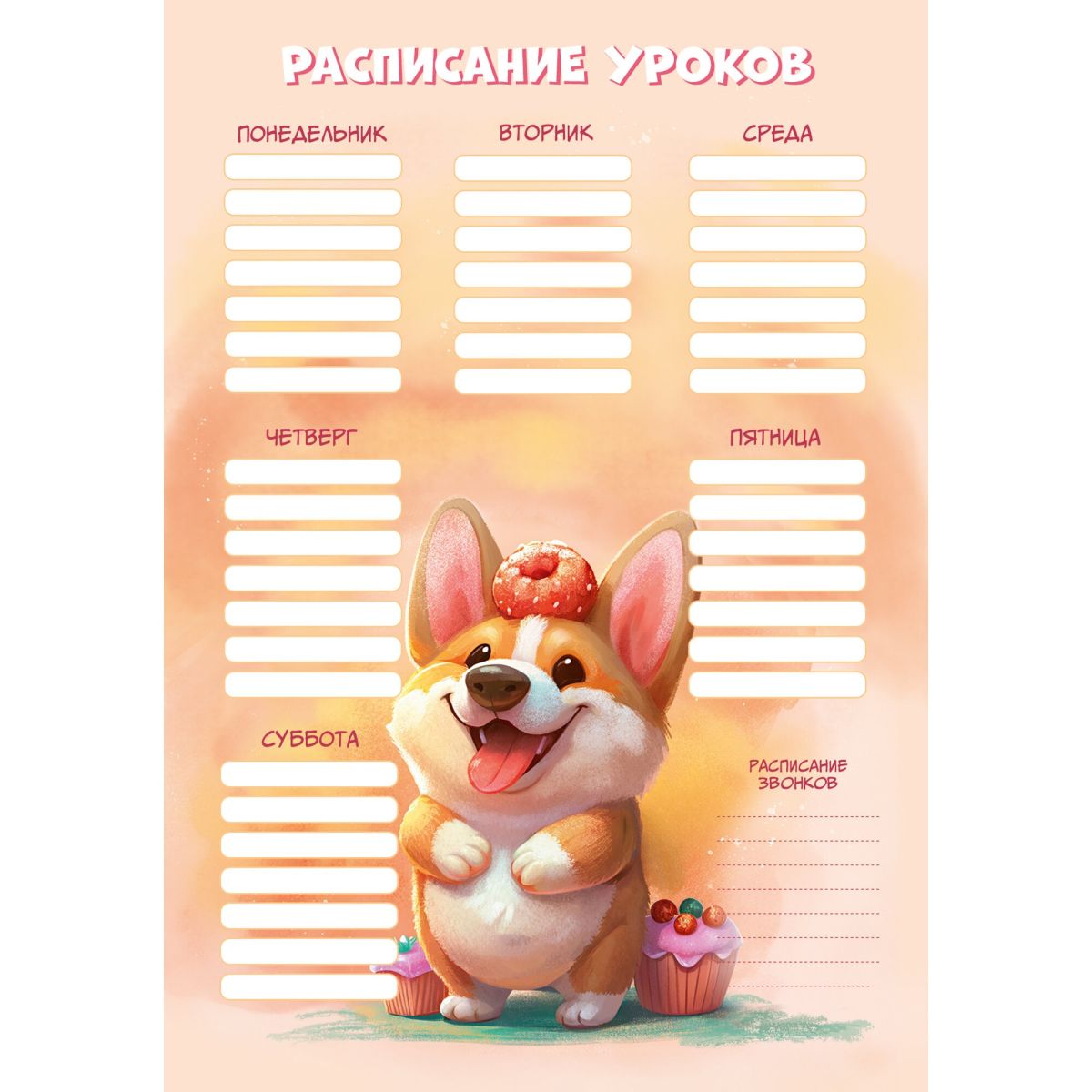 Расписание уроков А4 РЛ40043 Сладкий коржик