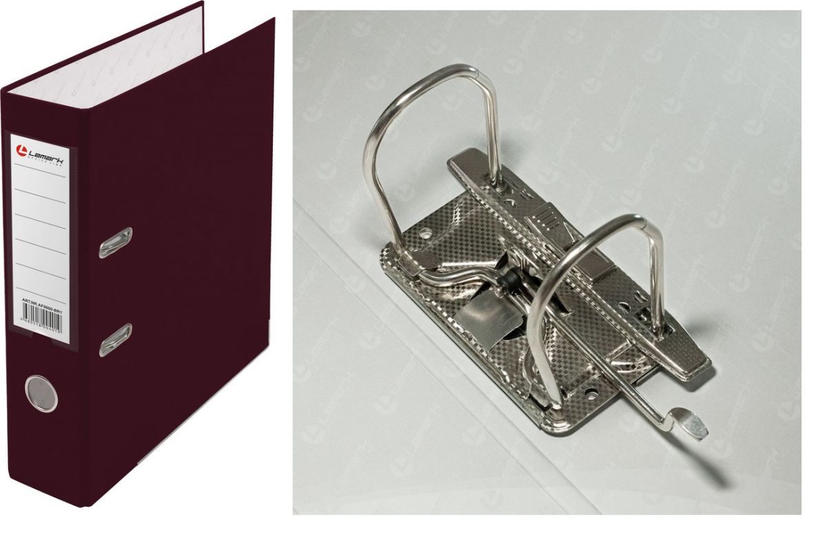 Регистратор 8см PP бордовый, метал.окантовка/карман, собранный,LAMARK600