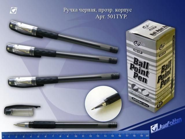 Ручка шарик. 501TYP-1.0 прозрач корп. черная
